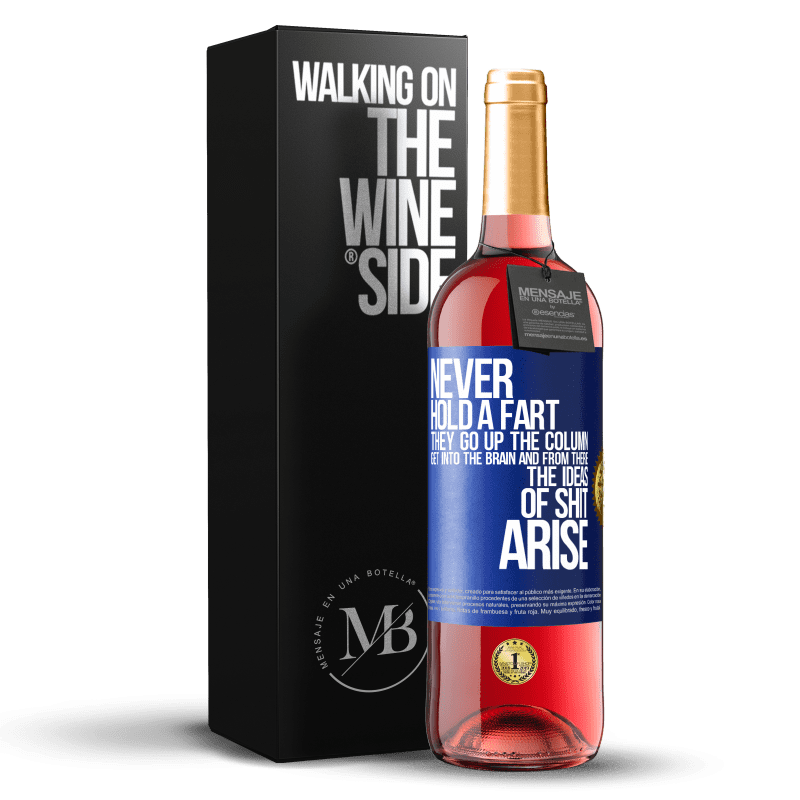 | 名 | 瓶子里的消息. 带有个性化标签的酒瓶. 信息: "永远不要放屁。他们爬上专栏,进入大脑,然后便产生了狗屎的念头". 蓝色标签. 可自定义的标签. |