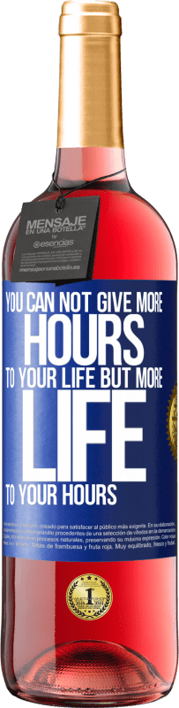 瓶子里的消息. 带有个性化标签的酒瓶. 信息: "你不能给自己的时间更多的时间,但可以给你更多的时间". 蓝色标签. 可自定义的标签. |