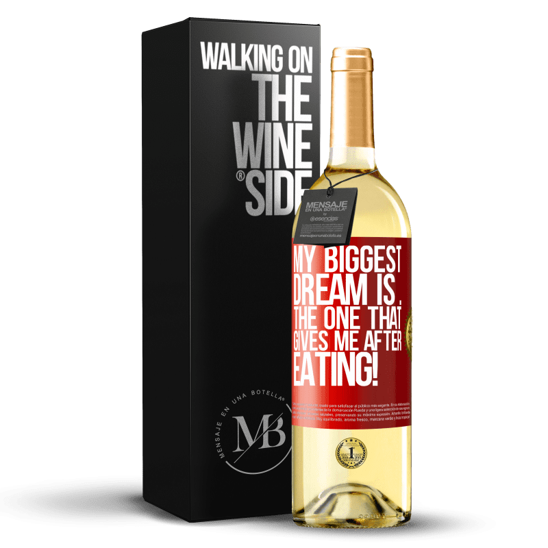 | 名 | 瓶子里的消息. 带有个性化标签的酒瓶. 信息: "我最大的梦想是……饭后给我的梦想!". 红色标签. 可自定义的标签. |