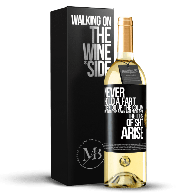 | 名 | 瓶子里的消息. 带有个性化标签的酒瓶. 信息: "永远不要放屁。他们爬上专栏,进入大脑,然后便产生了狗屎的念头". 黑标. 可自定义的标签. |