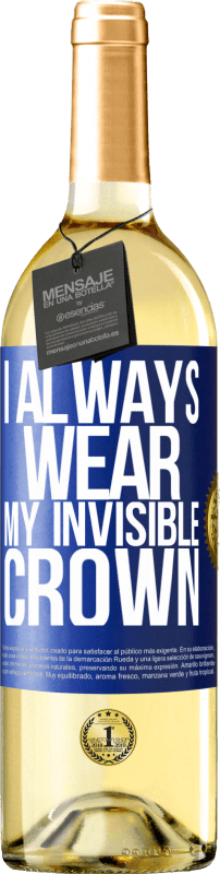 瓶子里的消息. 带有个性化标签的酒瓶. 信息: "我总是戴无形的皇冠". 蓝色标签. 可自定义的标签. |