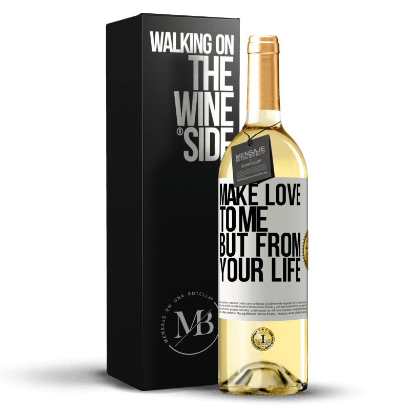 瓶子里的消息. 带有个性化标签的酒瓶. 信息: "跟我做爱,但从你的生活". 白标. 可自定义的标签. |