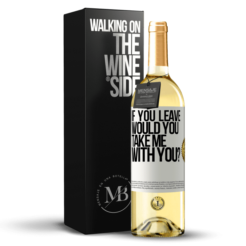 瓶子里的消息. 带有个性化标签的酒瓶. 信息: "如果你离开,你会带我去吗?". 白标. 可自定义的标签. |