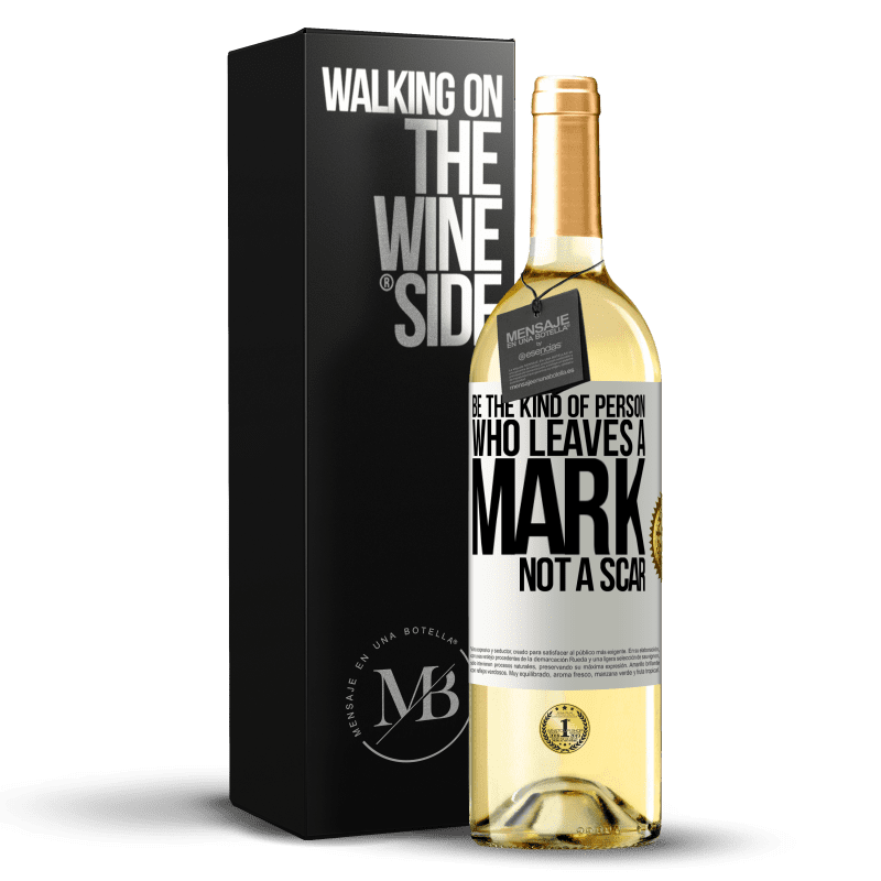 瓶子里的消息. 带有个性化标签的酒瓶. 信息: "做一个留下痕迹,而不是留下疤痕的人". 白标. 可自定义的标签. |