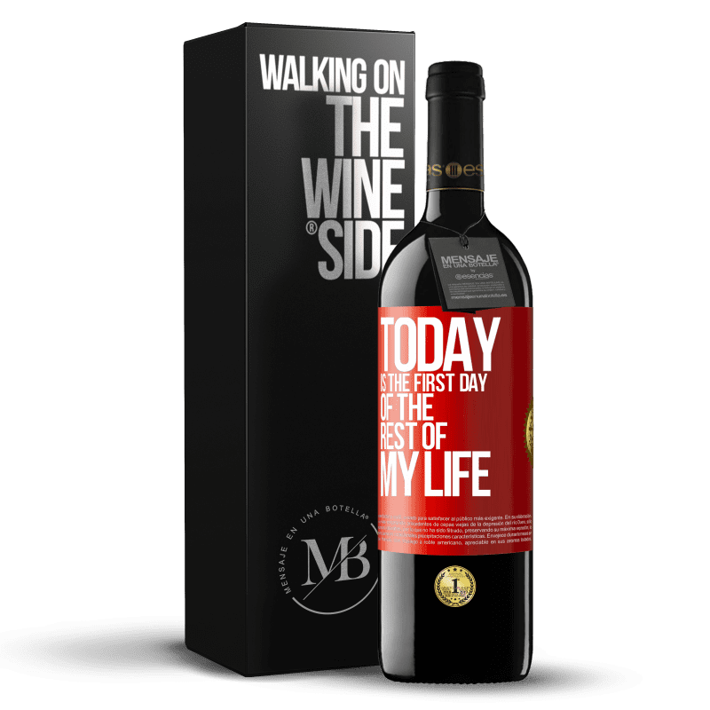| 名 | 瓶子里的消息. 带有个性化标签的酒瓶. 信息: "今天是我余生的第一天". 红色标签. 可自定义的标签. |