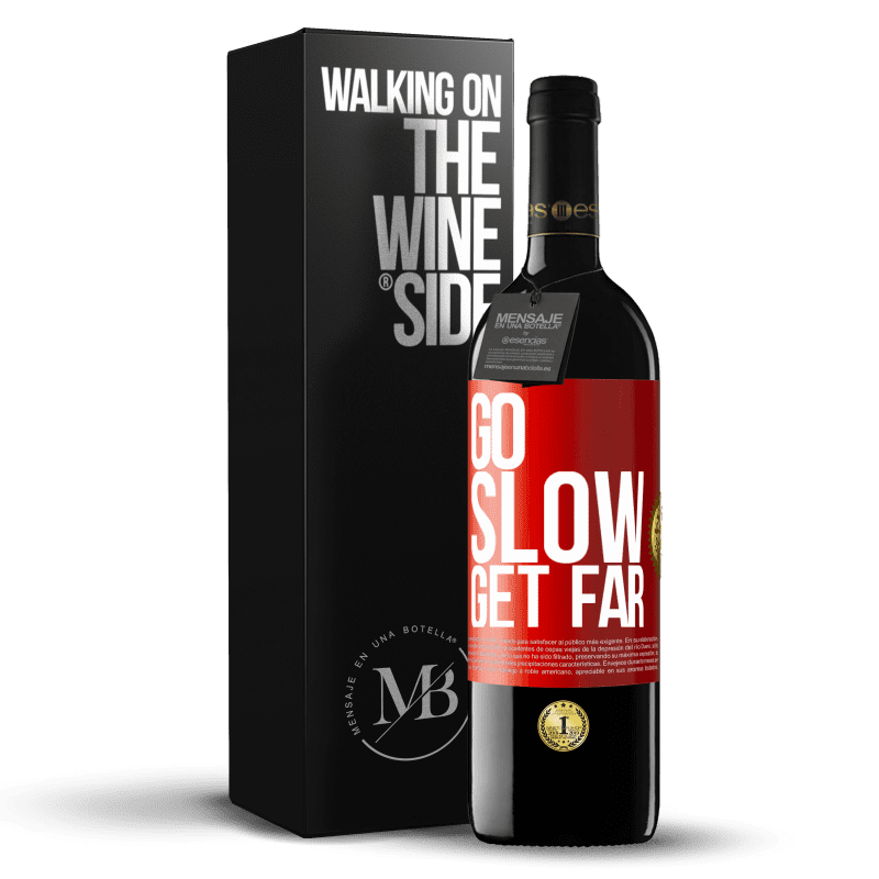 瓶子里的消息. 带有个性化标签的酒瓶. 信息: "慢慢走走远". 红色标签. 可自定义的标签. |