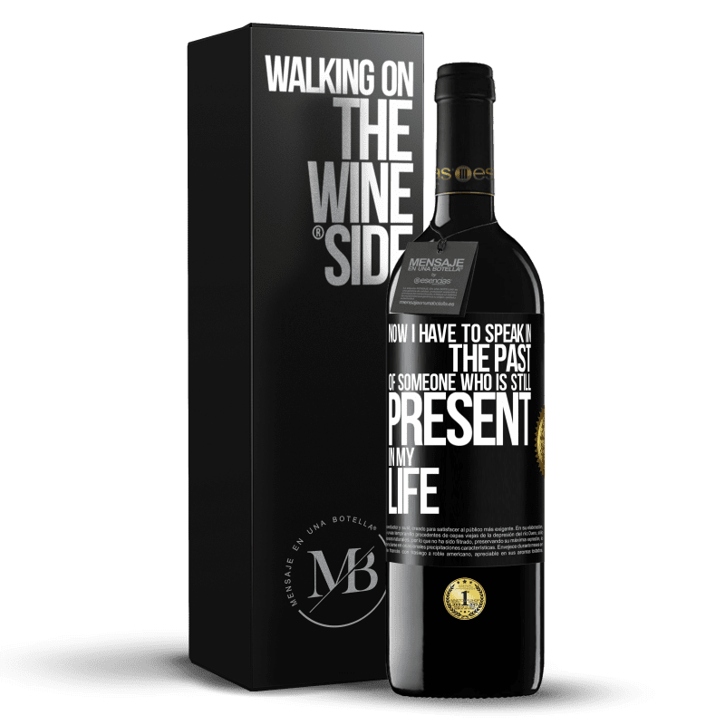 瓶子里的消息. 带有个性化标签的酒瓶. 信息: "现在,我不得不说一个仍然存在于我生命中的人的过去". 黑标. 可自定义的标签. |