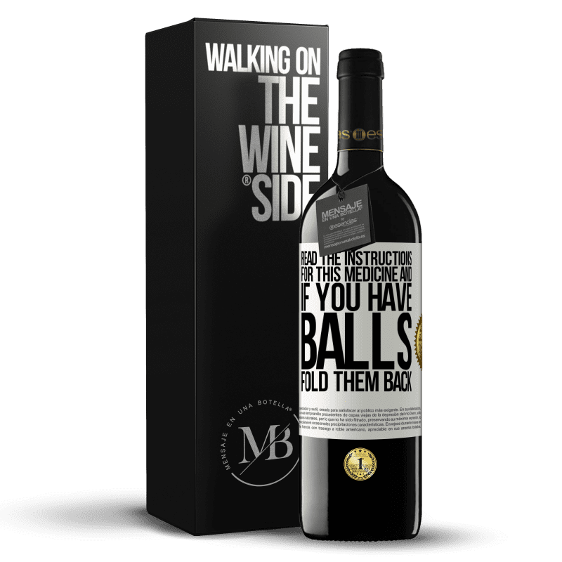 瓶子里的消息. 带有个性化标签的酒瓶. 信息: "阅读此药的使用说明,如果有球,请将其折回". 白标. 可自定义的标签. |