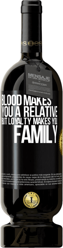 瓶子里的消息. 带有个性化标签的酒瓶. 信息: "血使您成为亲戚,但忠诚使您成为家庭". 黑标. 可自定义的标签. |