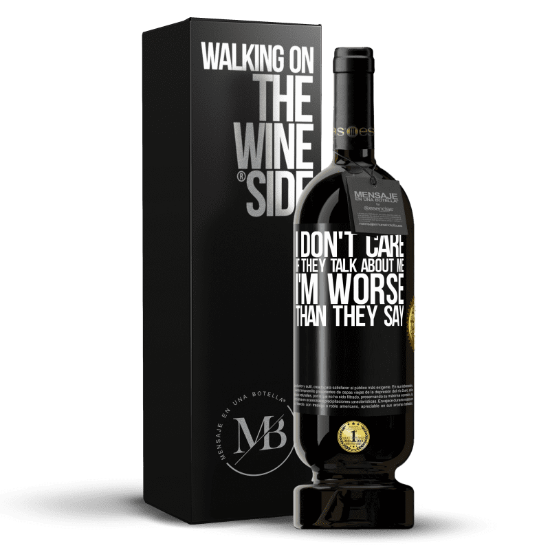 瓶子里的消息. 带有个性化标签的酒瓶. 信息: "我不在乎他们是否在谈论我,总的来说,我比他们说的还要糟糕". 黑标. 可自定义的标签. |