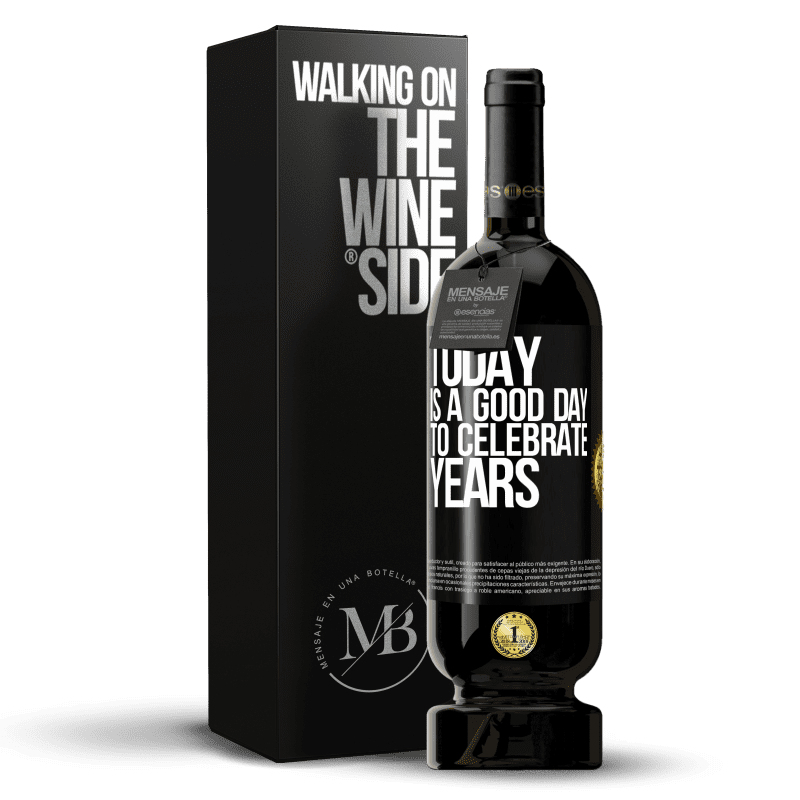 瓶子里的消息. 带有个性化标签的酒瓶. 信息: "今天是庆祝岁月的好日子". 黑标. 可自定义的标签. |